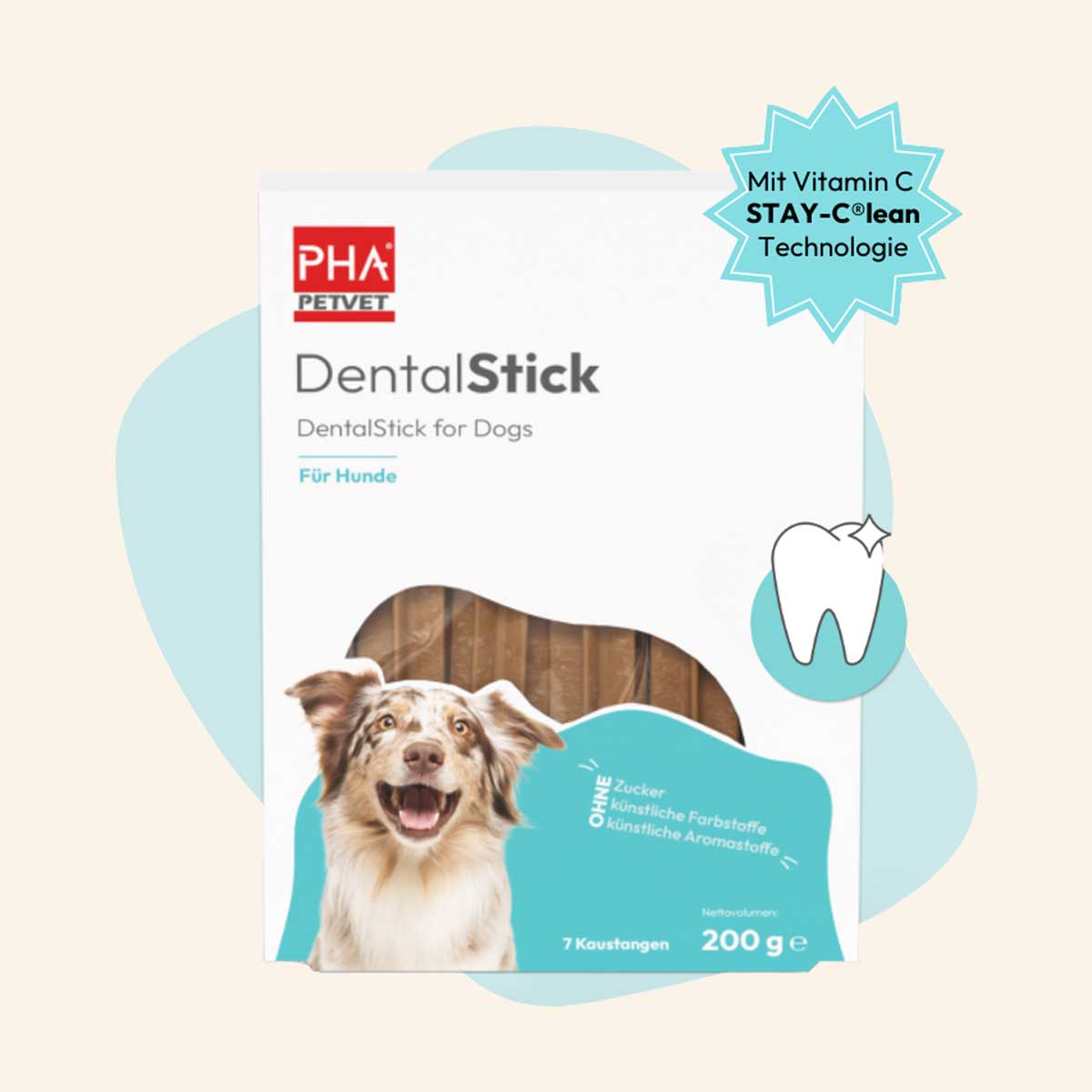 Der PHA DentalStick ist eine wohlschmeckende Kaustange. Mit der speziell entwickelten Formel aus Calcium, Phosphor und Vitamin C fördert der Stick die Zahngesundheit des Tieres.