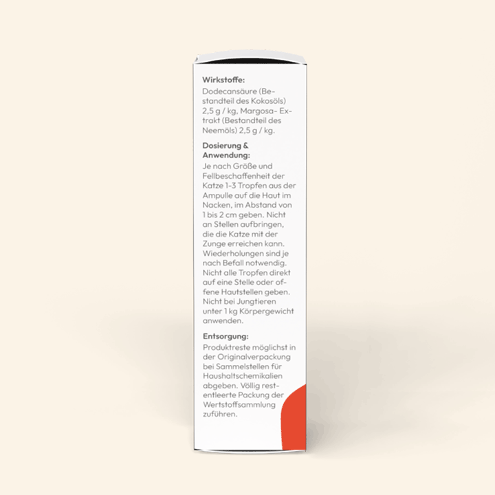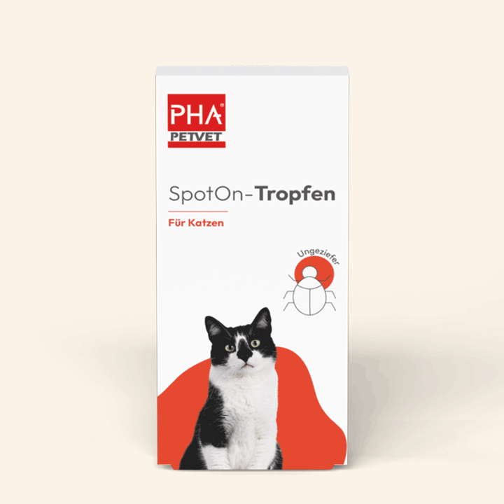 PHA Spot-onTropfen verteilen sich rasch als feiner, seidiger Film über Haut und Haare der Katze. PHA Spot-onTropfen wehren Flöhe und Zecken ab und beugen ca. 4 Wochen lang einem Neubefall vor. Weitere effektive Produkte zur Parasitenabwehr und -bekämpfung: PHA Floh & ZeckenStopp für Hunde und Katzen: Ein praktisches Pumpspray, das schnell und effektiv Parasiten wie Zecken, Flöhe und sogar Milben abwehrt. Es kann einfach vor jedem Spaziergang oder Freigang angewendet werden. PHA SchutzBand für Katzen: Dieses Kunststoffhalsband mit Sollbruchstelle schützt Katzen bis zu 3 Monate lang vor Neubefall von Flöhen, Zecken und sogar Stechmücken. Es ist sicher und auch für Jungtiere ab 16 Wochen geeignet. PHA ZeckenZange für Hunde und Katzen: Die perfekte Ergänzung für die Parasitenkontrolle. Mit ihrem speziellen Mechanismus ermöglicht die Zange eine einfache und sichere Entfernung von Zecken, ohne sie zu quetschen. PHA UmgebungsSpray für Hunde und Katzen: Dieses Spray bekämpft Parasiten wie Flöhe und Zecken in der Umgebung Ihres Tieres (z. B. Schlafplatz, Teppich oder Sofa). Es wirkt in allen Entwicklungsstadien der Parasiten und beugt Neubefall wochenlang vor, ohne Flecken zu hinterlassen.
