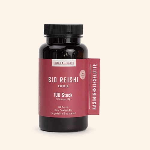Abgestimmte Mischung aus Pulver und Extrakt des Bio Reishi Vitalpilzes. Für optimale Verfügbarkeit enthalten unsere